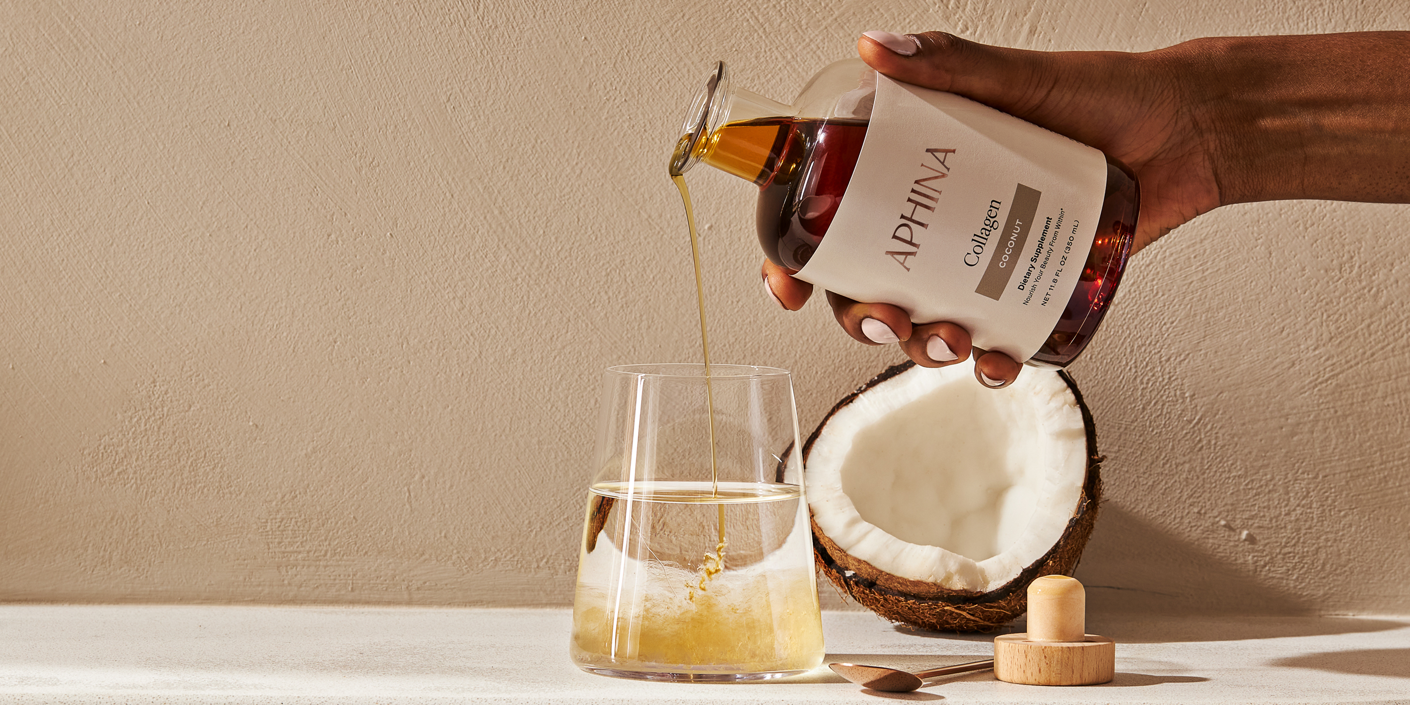 Aphina Liquid Marine Collagen is a clean, ready-to-enjoy elixir made with wild-caught marine collagen. Crafted to complement your daily wellness routine, it provides a smooth and easy way to incorporate collagen into your day. Infused with natural essences like coconut, our delicate flavour profiles strike a gentle balance of subtle and sweet, making them perfect for mixing into water, coconut water, almond milk, smoothies, coffee, or pairing with our restorative powders.